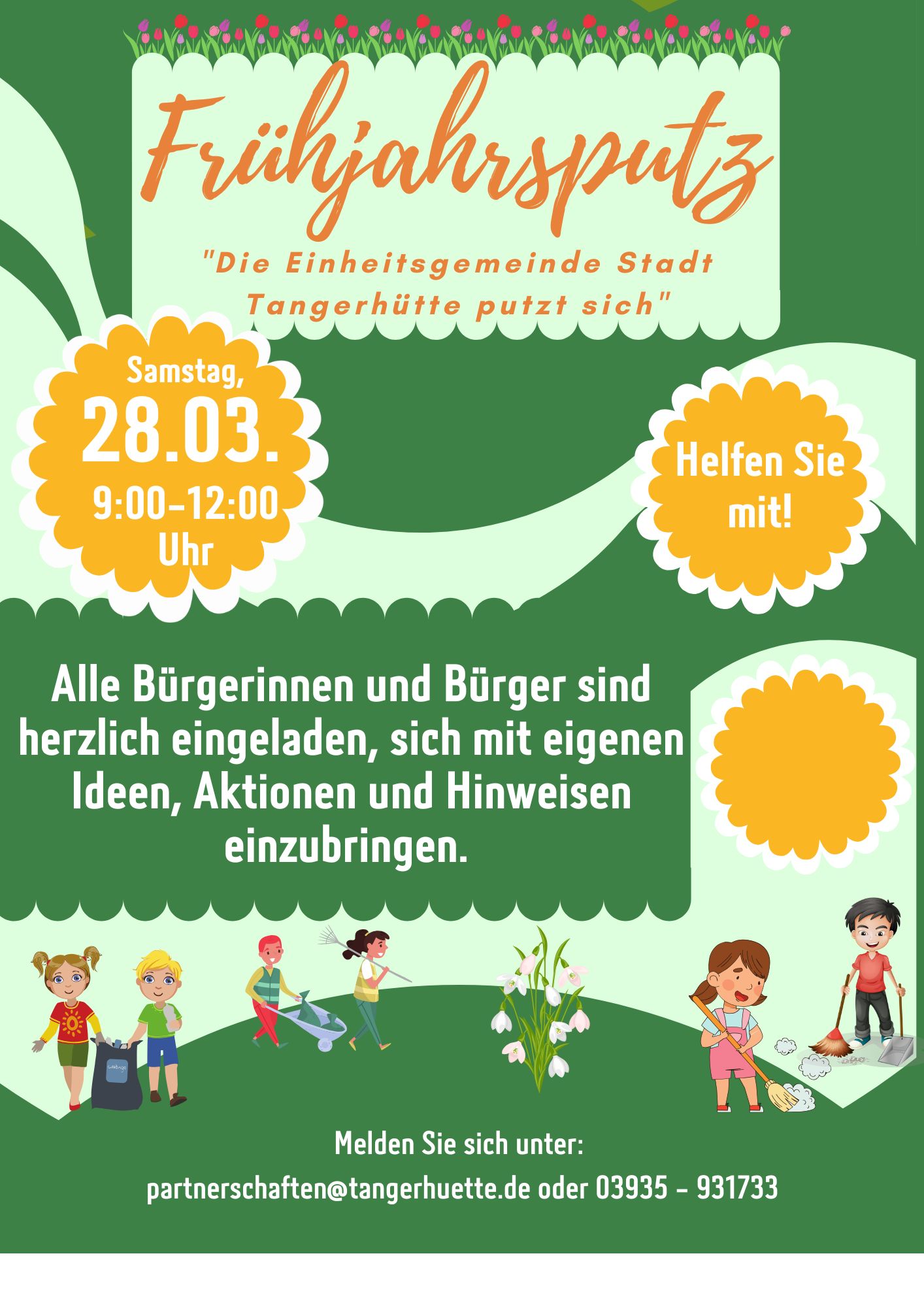 Die Einheitsgemeinde Stadt Tangerhütte beteiligt sich am 28. März 2026 am landkreisweiten Frühjahrsputz und lädt Bürgerinnen und Bürger, Vereine, Einrichtungen und Initiativen zur Beteiligung ein.