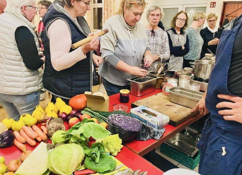Die 30 Teilnehmenden bereiteten gemeinsam mit Rudolf Sasse und Oliver Skoluda Gerichte wie Kartoffelknödel mit Speckalgen, Misosuppe mit Pilzen sowie Chlorella-Porridge mit Äpfeln zu. Begleitend erhielten sie Einblicke in den regionalen Anbau und erfuhren, welchen Beitrag Pilze und Algen zu einer klimabewussten und gesunden Ernährung leisten können.